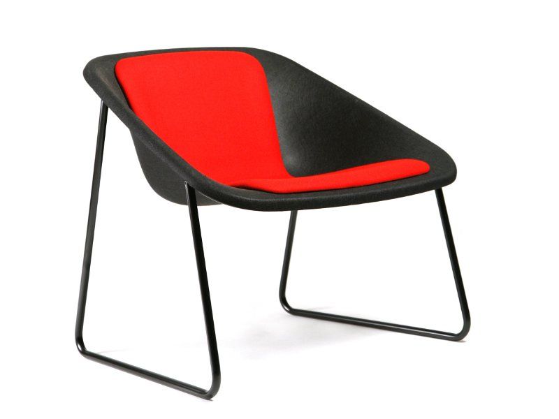 Kola Lounge is an easy chair for relaxed sitting. Kola is aesthetically and weight wise a light chair, making it fit both public and private modern interiors. The seat, available black or dark grey, is manufactured of 100% recyclable polyester felt which has also great acoustic absorption capacities. The frame is epoxy coated (black, white or yellow) or chromed steel. The felt seat can easily be renewed which gives the chair a longer life cycle and accordingly it leaves a smaller ecological footprint. The upholstered cushion gives extra comfort and allows the use of playful colours. With Kola you can create nice and friendly looking interiors. Kola Lounge suits exceptionally well in waiting areas and lounges.