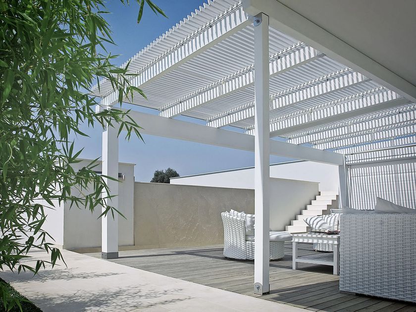 Aluminium pergola with adjustable louvers