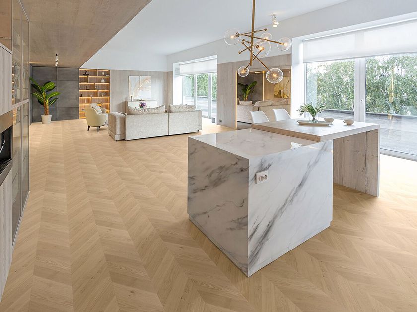 Il decoro Rovere Vicenza fa parte della linea Palladio S650. Nella dimensione di 650 x 120 x 15 mm presenta un incastro M+F e un micro bisello sui 4 lati. Adatto a riscaldamento a pavimento possiede la certificazione Cfl-S1 come reazione al fuoco.